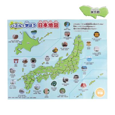 楽しくあそんでおべんきょう!日本地図が描かれたシートと都道府県の形をしたパズルピースのセット。