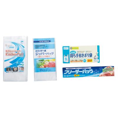 <セット内容> ●持ち手付きポリ袋S20枚BOX×1 ●フリーザーバッグM5枚×1 ●レンジもOKキッチンパック10枚×1 ●スライダー式ジッパーバッグM1枚×1 |