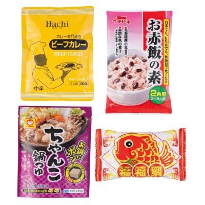 <セット内容> ・東洋水産 お鍋にポン鍋つゆ6個入(3人前)×1 ・カレー専門店のビーフカレー(中辛)200g×1 ・イチビキ 赤飯の素2合用100g×1 ・福福鯛×1 ※東洋水産お鍋にポン鍋つゆ6個入(3人前)は種類がランダムになります。 |