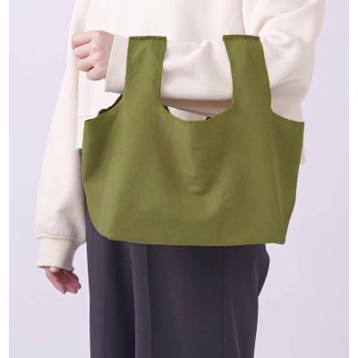 横も底もマチをたっぷり備え、コンビニ弁当がフラットに収まります。バンドで手の平サイズに折りたたみが可能です。高見えするスエード風生地を採用。ショップ名やロゴを入れてオリジナルエコバッグを製作できます。ランチや小買い物に便利で、知名度もアップします。