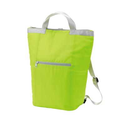 手持ちとリュックの2WAY。自転車での買い物もラクラクです。縫い付けのゴムバンドで小さくまとめられるので持ち歩きにも便利。内側には保冷剤用メッシュポケット付き。