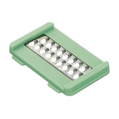 アタッチメントを取り換えるだけで「おろし」「しぼり」「スライス」「千切り」「つま切り」5種類ができる調理の時短アイテムです。指をケガしない安全ホルダー付き。キッチンになじむグリーンがさわやかです。