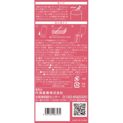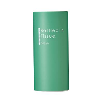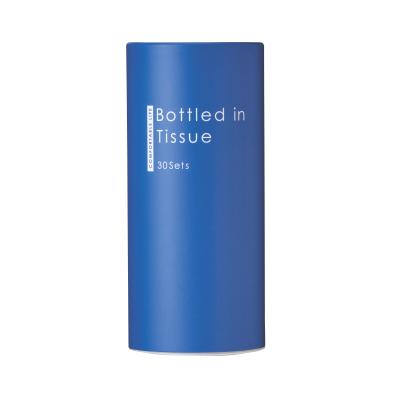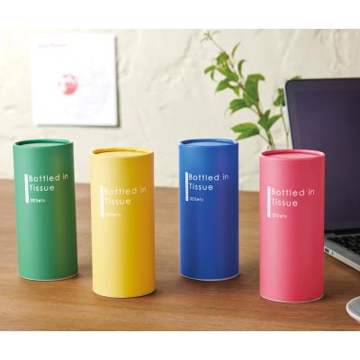 置き場所を選ばない30枚入りティッシュケース。車のドリンクホルダーにすっぽり入る円柱型で、デスクや車内で邪魔にならないコンパクトなサイズ。市販のティッシュを半分に切って詰め替えが可能なので繰り返し使うこともできます。販促品用にロゴやマークの名入れをすれば企業やお店のイメージアップにもつながります。
