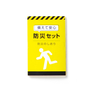 避難時に役立つ9点入り防災セット。A4スペースに収まるパッケージで常備に最適です。