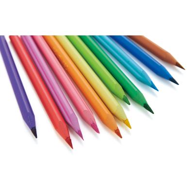 リサイクルポリスチレンを使用して作られた色鉛筆12色セット。環境にやさしい仕様で、エコ意識を楽しく学べるアイテムとしてもおすすめです。断面がハート型になっているユニークなデザイン。陳列しやすい透明感のあるクリアケース入りで持ち運びやすく、鉛筆削りも付属しています。