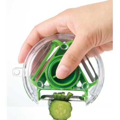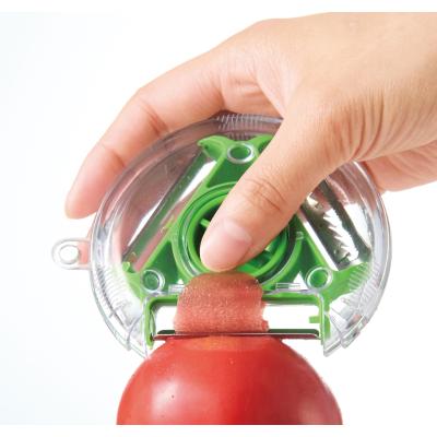 手のひらに収まる丸いフォルムに、標準皮むき・千切り・ソフトスキンの3種類の刃を内蔵。中央のダイヤルを回せば簡単に切り替えられ、定番野菜から、トマトなどの柔らかい果物まで幅広く対応できます。会話のきっかけにもなるユニークなアイテム。