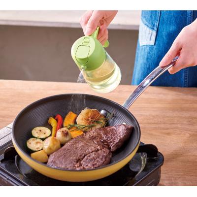 レバーを引けばミスト状に広がるスプレー機能で、フライパンやサラダに少量のオイルをムラなく吹きかけ可能。余分な油をカットできるので、毎日の調理がぐっとヘルシーに。フタを開ければ通常の注ぎ口としても使え、ドレッシングや調味料をかけすぎる心配なし。注ぎ口は液だれしにくく、本体は補充や詰替が簡単な広口設計。