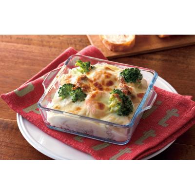 電子レンジ・オーブン・トースターに対応し、グラタンやドリア、野菜料理やスイーツ作りまで幅広く活躍。「スプーンで食べるかぼちゃカレーコロッケ」「ラタトゥイユ」「シーフードドリア」の3種のレシピ付き。見た目も美しく、テーブルにそのまま出せる実用的なオーブンウェアです。