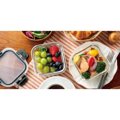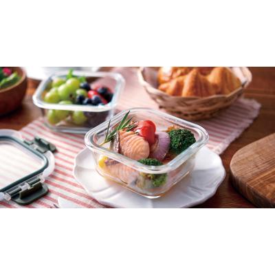 汁物を入れてもこぼれにくいパッキン付き!スタイリッシュなデザインの耐熱ガラス保存容器です。