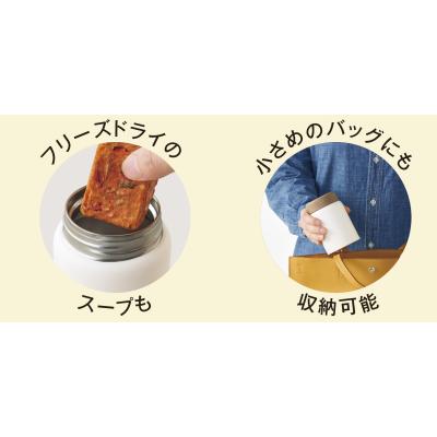 コンパクト設計でランチバッグにもすっきり収まる便利なサイズ感。フリーズドライの温かいスープにも!オフホワイトの本体にベージュの蓋を合わせたやさしい色合いは清潔感があり、名入れも映えるデザイン。毎日のランチにスープを添えて満足感UP!