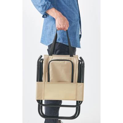 座面下に保冷温バッグを備えた多機能チェア。ドリンクや軽食を入れられて、アウトドアやイベントで大活躍!