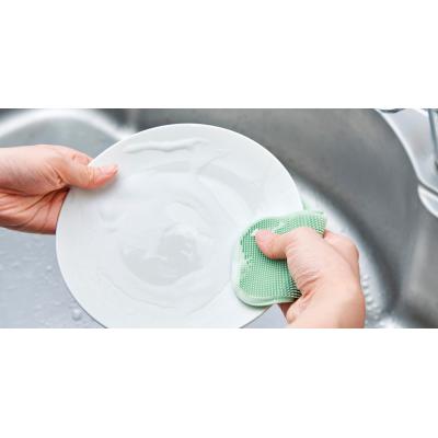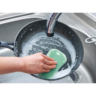 フライパンや食器はもちろん、細かいブラシ形状でザル洗いにも最適!使い終わったら裏面の吸盤でシンクにくっつけておけます。吊り下げ保管もOK。