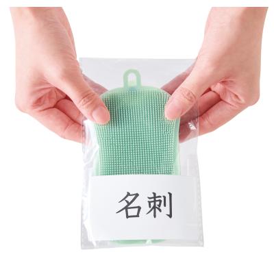 二つ折りではさんで洗えるやわらかシリコン素材。ご挨拶に適した名刺ポケット付きパッケージ。