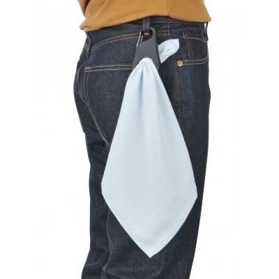 内側にあるホルダーを取り出し、ペットボトルのネック部分に引っかけて使用します。タオルは先端をホルダーに押し込んで使用します。バッグやベルトループに取り付けられるので身軽に動けます。