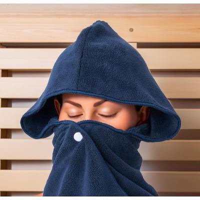 巻き方次第で顔や髪を熱から守る便利なアイテム。サウナ内の乾燥から肌や髪をやわらかな手触りで守り、スナップボタンで調整可能。頭巾やヘッド&マスクタイプに変形可能で呼吸しやすく、汗も拭けます。ネイビーとカーキの2色で、サウナタイムが快適に。
