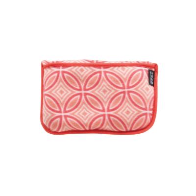 茜色ともえぎ色の2色が和の雰囲気を醸し出し、「七宝文様」は商売繁盛や円満、縁繋ぎの願いを表現しています。ポケットに収納できるコンパクトサイズのブランケットです。「文様百趣」というデザインブランドは、世界各国の伝統文様をデジタルデータ化し、現代のデザインに活かすことで、美しさとメッセージを未来に伝えています。
