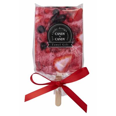 【旧来ご提供単価120円】 みずみずしいフルーツ柄のハンドタオルを、アイスキャンディーのようなかわいいパッケージに仕上げました!
