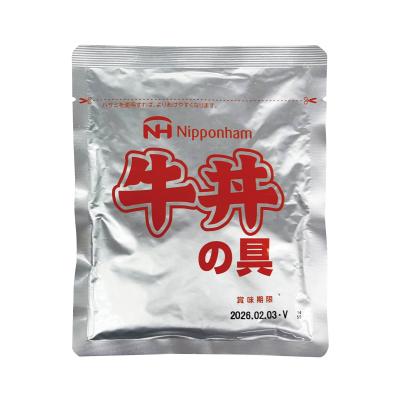 肉・野菜の旨みと濃縮りんご果汁の甘みを加えた、ごはんによく合うこだわりのたれで牛肉と玉ねぎをやわらかく煮込みました。内袋のままたっぷりの熱湯で3分温めるだけで、人気の味の牛丼をお楽しみいただけます。