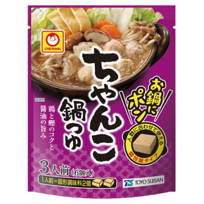 チキンエキスをベースに香辛料を利かせた醤油味の固形鍋つゆの素。