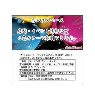 パイナップルの甘い香りとすっきりした味わいの凍頂烏龍茶は、お店の担当者とお客様のご縁が花開かせたいとの思いから開発した商品です。 ※オリジナル印刷の可能な範囲はゆかり茶一煎パックの裏面上部1/2の範囲となります。