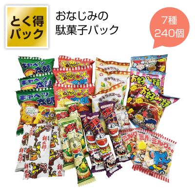 低単価の駄菓子を7種計240個詰め合わせた、ボリューム満点の駄菓子キットです。