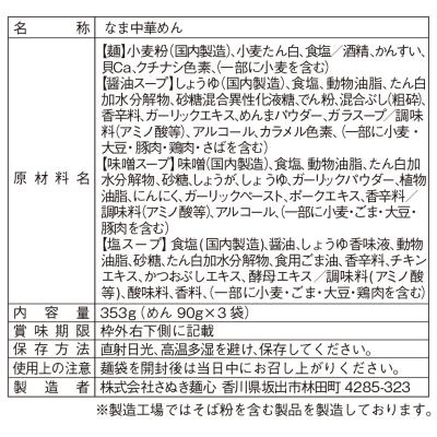 <セット内容> めん90g×3 醤油スープ×1 味噌スープ×1 塩スープ×1 お持ち帰りポリ袋同梱 |