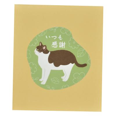 リラックスしたにゃんこが目印。 ありがとうございます/ほんの気持ちです/いつも感謝 の3種類のメッセージをご用意しています。(中身共通) それぞれ50個単位150個以上(以降50個単位)でお申込みいただけます。