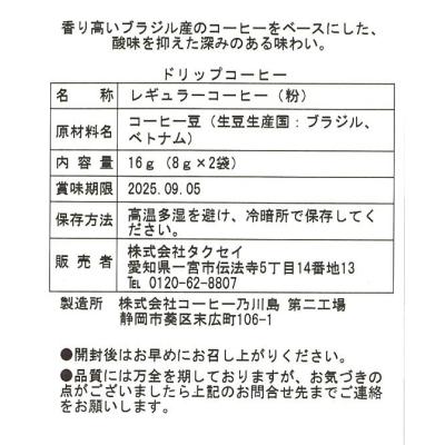 パッケージのかわいい猫がお客様に感謝の気持ちを伝えます。 ドリップコーヒー2包入り。