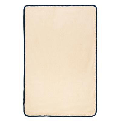 両面ボア仕様でしっかりあたたかいブランケットは、ベーシックなネイビー×ベージュの落ち着いた配色で使いやすいデザイン。付属のベルトでくるっとまとめれば、スッキリ収納できるだけでなく、枕やクッション代わりとしても活躍します。ベルト部分にはさりげなく名入れ印刷が可能ですので、ぜひご活用ください。