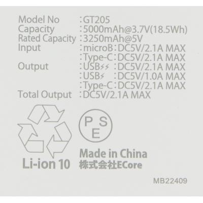 その他 <セット内容> Type-Cケーブル(約34.5cm)×1 定格入力/DC5V2.1A(microB・Type-C) 定格出力/DC5V2.1A(USB Type-A・Type-C) DC5V1A(USB Type-A) 合計最大2.1A