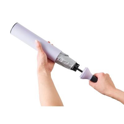 まるでワインボトルのような形のスタイリッシュなハードケースに入った晴雨兼用傘