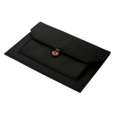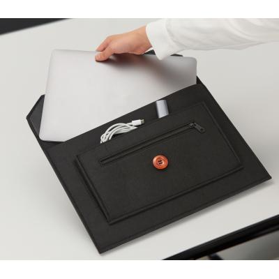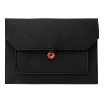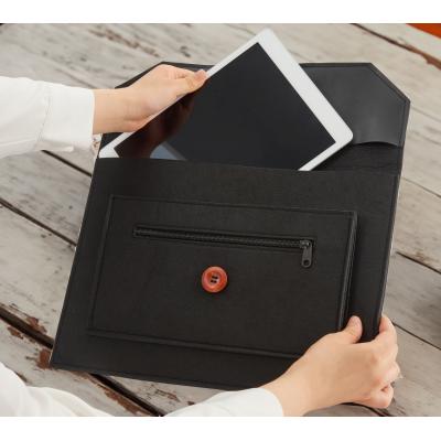 ビジネスバッグのインナーバッグとしても使いやすいスマートなシルエット。中央のウッドボタンがアクセントになっています。名入れも可能なので、企業の記念品や従業員向けの備品などで活用できます。