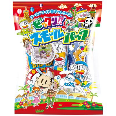 駄菓子が6個入ったパックを2種類のデザインにてお届けします。