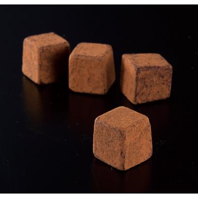 コンパクトサイズの化粧箱にくちどけなめらかな生チョコ風のキューブタイプのミルクチョコを4個封入しました。