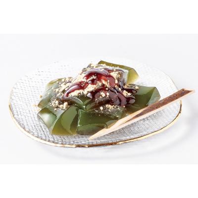 ぷるぷる・もちもちの食感に抹茶のふくよかな苦みと甘みを纏ったわらび餅に、やさしい甘みの黒みつと風味豊かなきなこをかけてお召し上がりください。