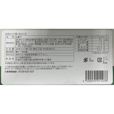 その他 <セット内容> 抹茶わらび餅(黒みつ・きな粉付)70g×6