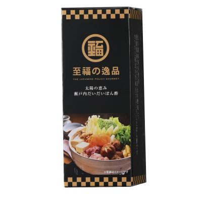化学調味料不使用。瀬戸内産「だいだい」果汁の酸味とカツオと椎茸の旨味をブレンドしたぽん酢です。黒を基調としたモダンなパッケージも目を惹きます。 至福の逸品の心得・・・一、「古今無双」現地に赴き、作り手のこだわりに向き合い比類なき一品であること。一、「不同不二」他では扱えない比類なき一品であること。一、「不離一体」価格・味・品質の全てに比類なき一品であること。