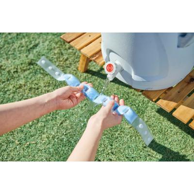 約28℃以下で自然凍結するPCM素材を使用しており、冷凍庫はもちろん、水道の流水でも凍結します。 本体に名入れも可能。 コンパクトに折りたためるので、身軽に歩きたい時にもぴったりです。
