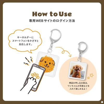 ギフトを受け取った方は、ギフトキーホルダーに付属するコードを読み込むと、専用サイトにアクセスし、ワンちゃんにぴったりなギフトを選ぶことができます。商品お申し込み後、キーホルダーはワンちゃんの写真などを入れて再利用できます。