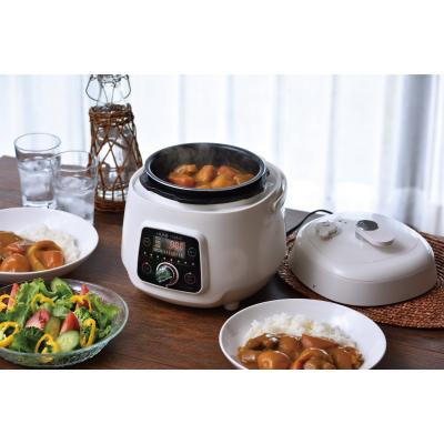 ・コンパクトタイプな2.5L容量(調理容量1.9L) ・鍋はフッ素樹脂塗装でこびり付きにくい ・材料を入れてほったらかしOK ・圧力・白米・角煮・カレーなどのコース付き ・ダイヤルでの任意設定も可能 ・かんたんレシピ付き