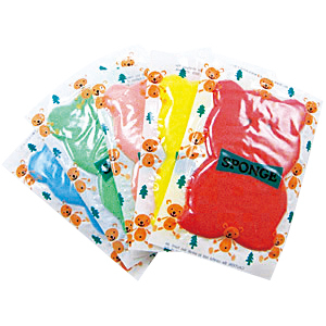 圧縮包装されたクマ型のかわいいキャラクタースポンジです。カラーは色鮮やかな5色アソート!水につけると膨らみます。ボディ用としてお使いいただけます。