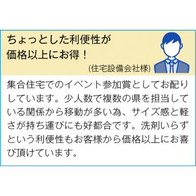 ドイツのBASF社のバソテクト(R)を使用しています。BASFは登録商標です。洗剤を使わずに水だけで落とせるエコ商品。国内生産なので安心の短納期。ノベルティに最適のコンパクトサイズです。
