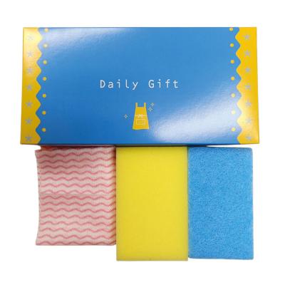 キッチン周りで使えるスポンジとふきんのクリーナーセット。化粧箱に入っているので販促品に便利です。