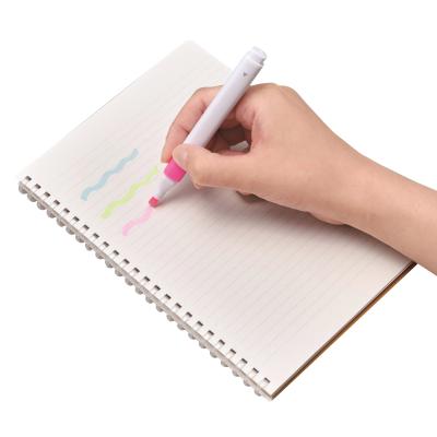 他のペンと並んでも目を引く、ユニークな形の蛍光ペン。