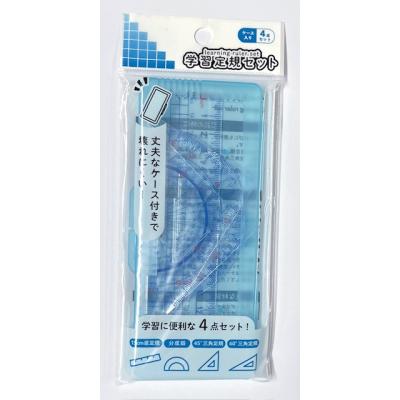 15センチ定規、分度器、直角二等辺三角形、直角三角形の4種類が入っております。メモリの数字が大きいのでとても見やすく測りやすくなっております。