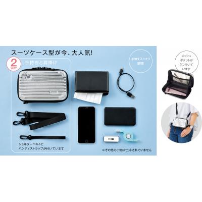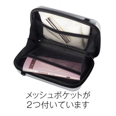 傷から守りたいガジェット類や散らかりがちな小物の持ち運びに。ファスナーを開けると内側に2つのメッシュポケット付き。ショルダーベルト&ハンディストラップ付きです。
