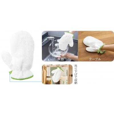 手にはめてそのまま食器洗いやテーブル拭きができます。洗った後は吊り下げられるループ付き。内側はソフトなEVA素材を使用しています。