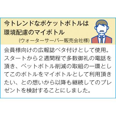 ポケットに入るちょい飲みサイズの小型ボトル。若年層からシニアまで使いやすいスタイリッシュなデザインです。