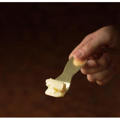固いアイスも溶ける「じわっととろける」アイスクリームスプーン。アルミ製で熱伝導が良く、手の熱がアイスに伝わります。レーザーによる名入れが可能で、おもしろノベルティとしてSNSでも人気。シンプルな手のひらサイズのパッケージで持ち運びに便利。