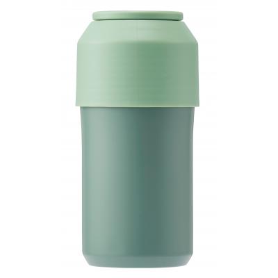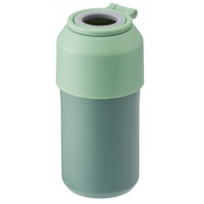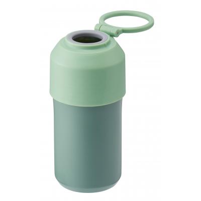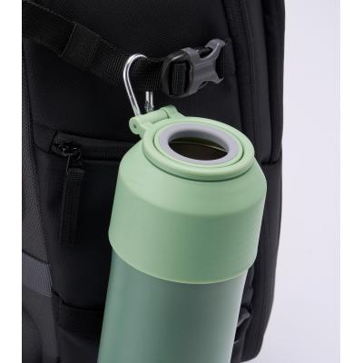 フタを締めればペットボトルを固定でき、フタの深さでサイズ調整が可能です。外せば通常の真空ステンレスタンブラーとしてもお使いいただける便利な2WAY仕様。収納できるハンドルと、使用前後の持ち運びに便利なカラビナ付きで、アウトドア関連のノベルティにおすすめです。